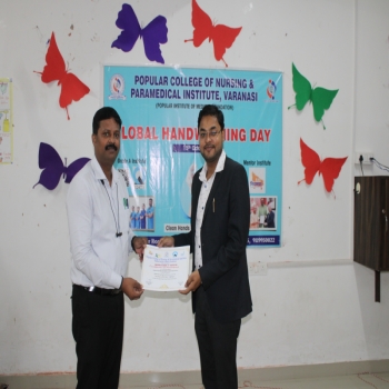 Popular college of Nursing and Paramedical Institute, Varanasi organized “Global Hand Washing Day-2023” awareness program on 14th October 2023 with theme “ Clean Hands a