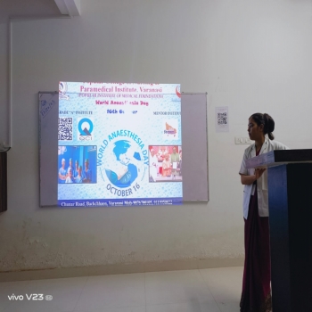 Popular College of Nursing & Paramedical Institute, Varanasi organized and celebrated the “World Anesthesia Day” on 16th October 2023 with Theme “Anesthesia and Cancer Care”. Academic Dean Cum Princip