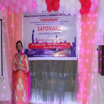 Farewell party –  Sayonara was organized by Paramedical Final Year on 21th October 2023 in Popular Nursing School and Paramedical Institute Auditorium.