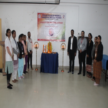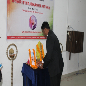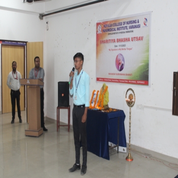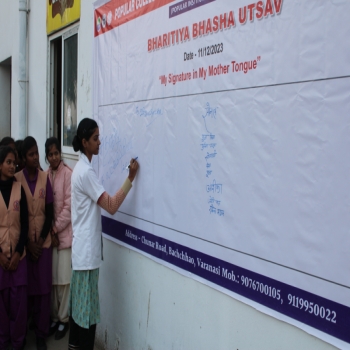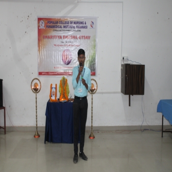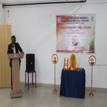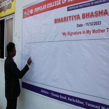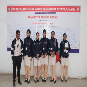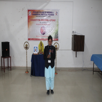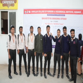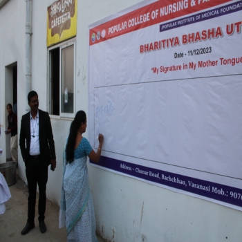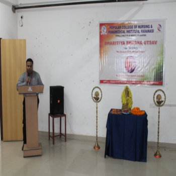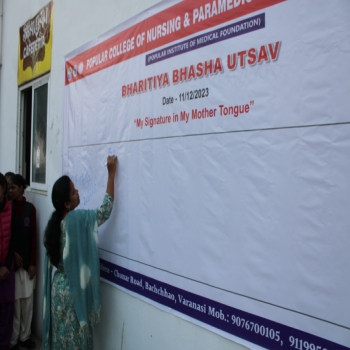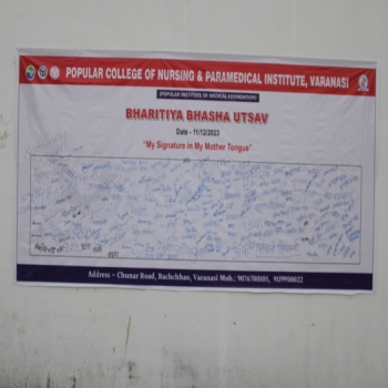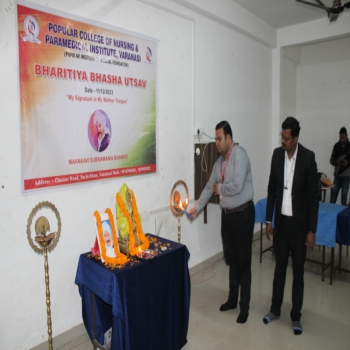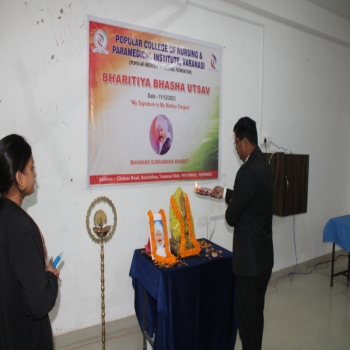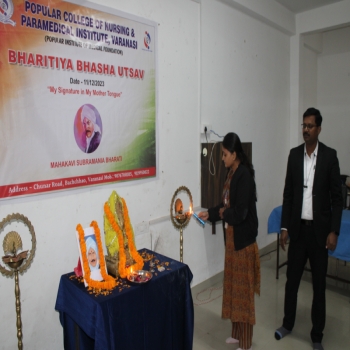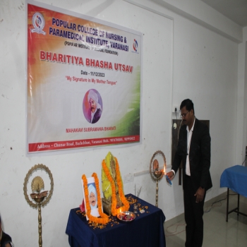 Popular College of Nursing & Paramedical Institute, Varanasi organized the “Bhartiya Bhasha Utsav” on the Janam Jayanti of Mahakavi Subramaniya Bharti on 11th Dec 2023 at MPH,PCON. The Program started